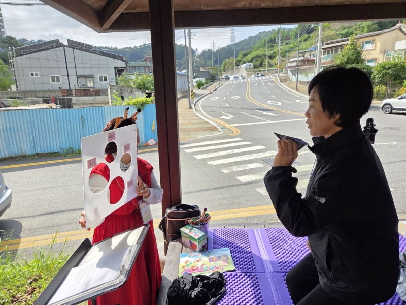 복음을 전하는 정자 옆으로 걸어가시며, 차를 타고 가시며 복음을 듣고 계시는 어르신들이 계십니다