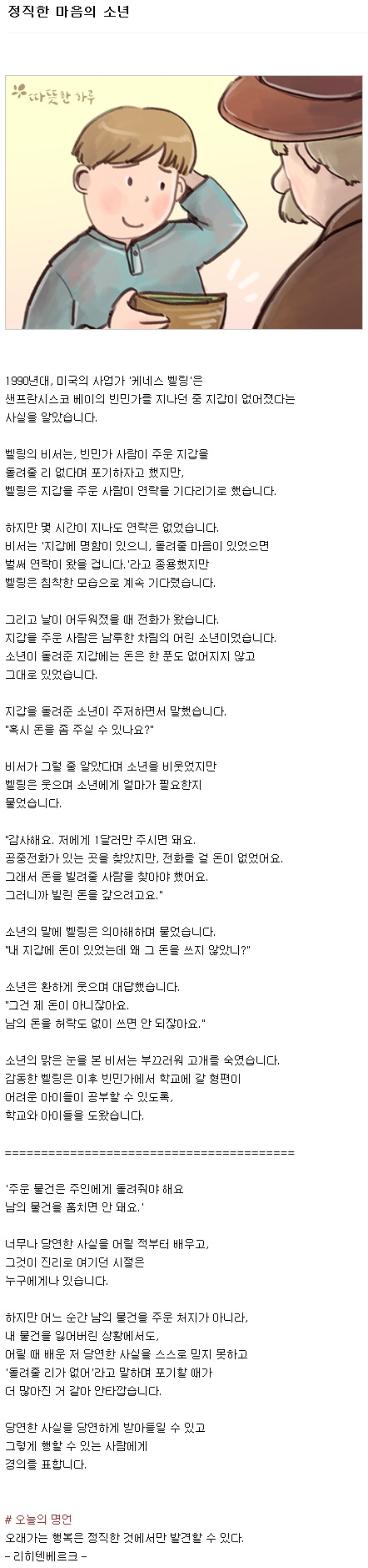 정직한 마음의 소년 페이지 정보 작성자 양승열집사 작성일19-07-05 00:38 조회1,599회 댓글0건 관련링크 목록 본문 출처 : 따뜻한 하루 댓글목록 등록된 댓글이 없습니다. 목록